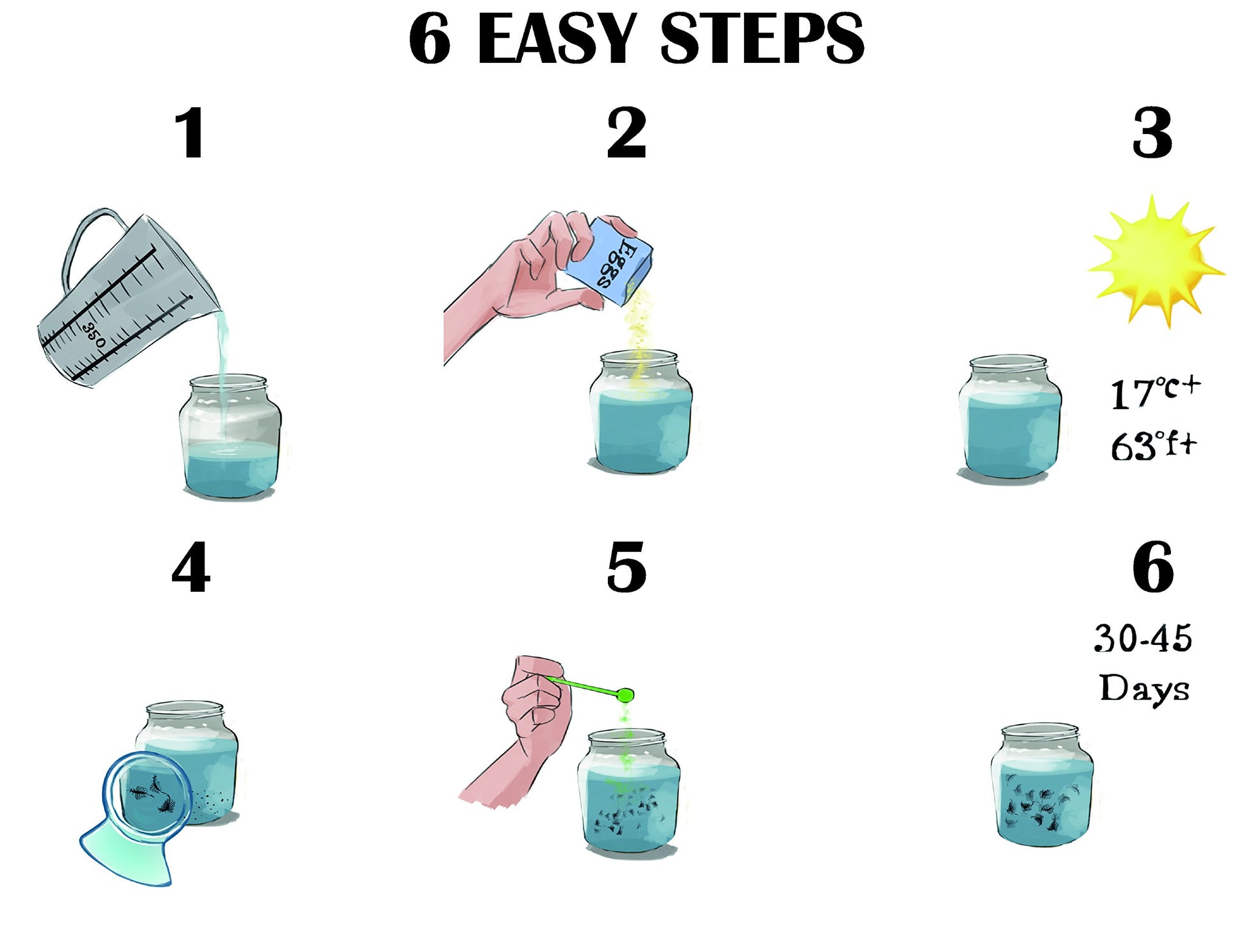 This kit includes all you need to get started (except for our aquarium tank) You can use any fish bowl or clear container, with 350-380ml of bottled water to hatch and grow Aqua Dragons.
